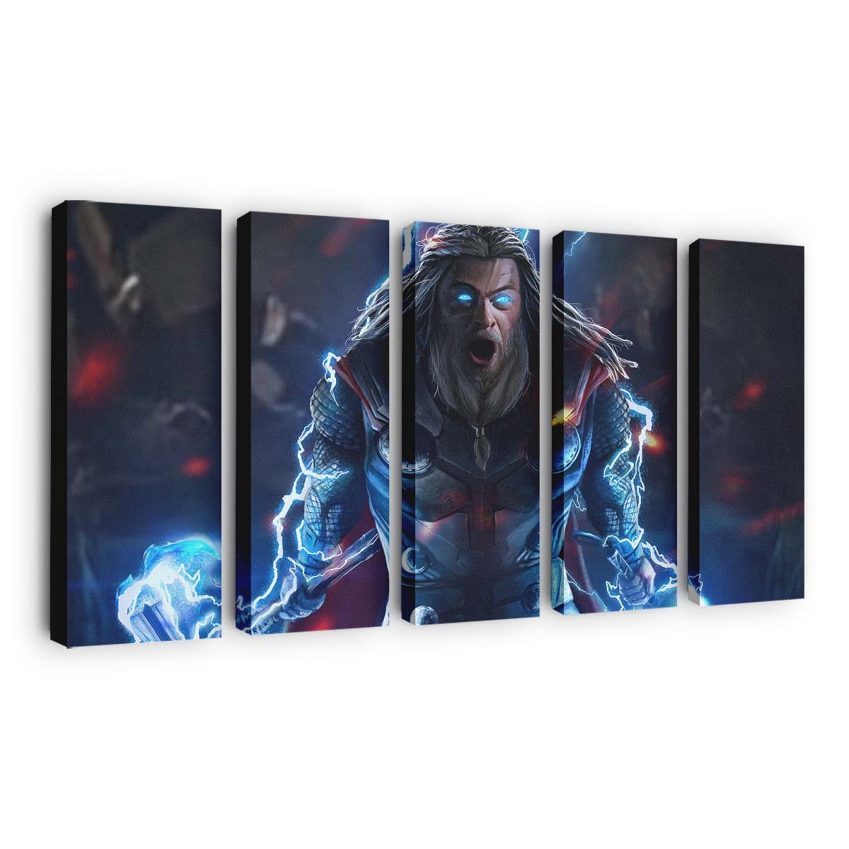 Erleben Sie die gewaltige Kraft von Thor, dem Donnergott aus dem Marvel-Universum. Dieses beeindruckende Leinwandbild bringt epische Action und die majestätische Aura Asgards direkt an Ihre Wand.