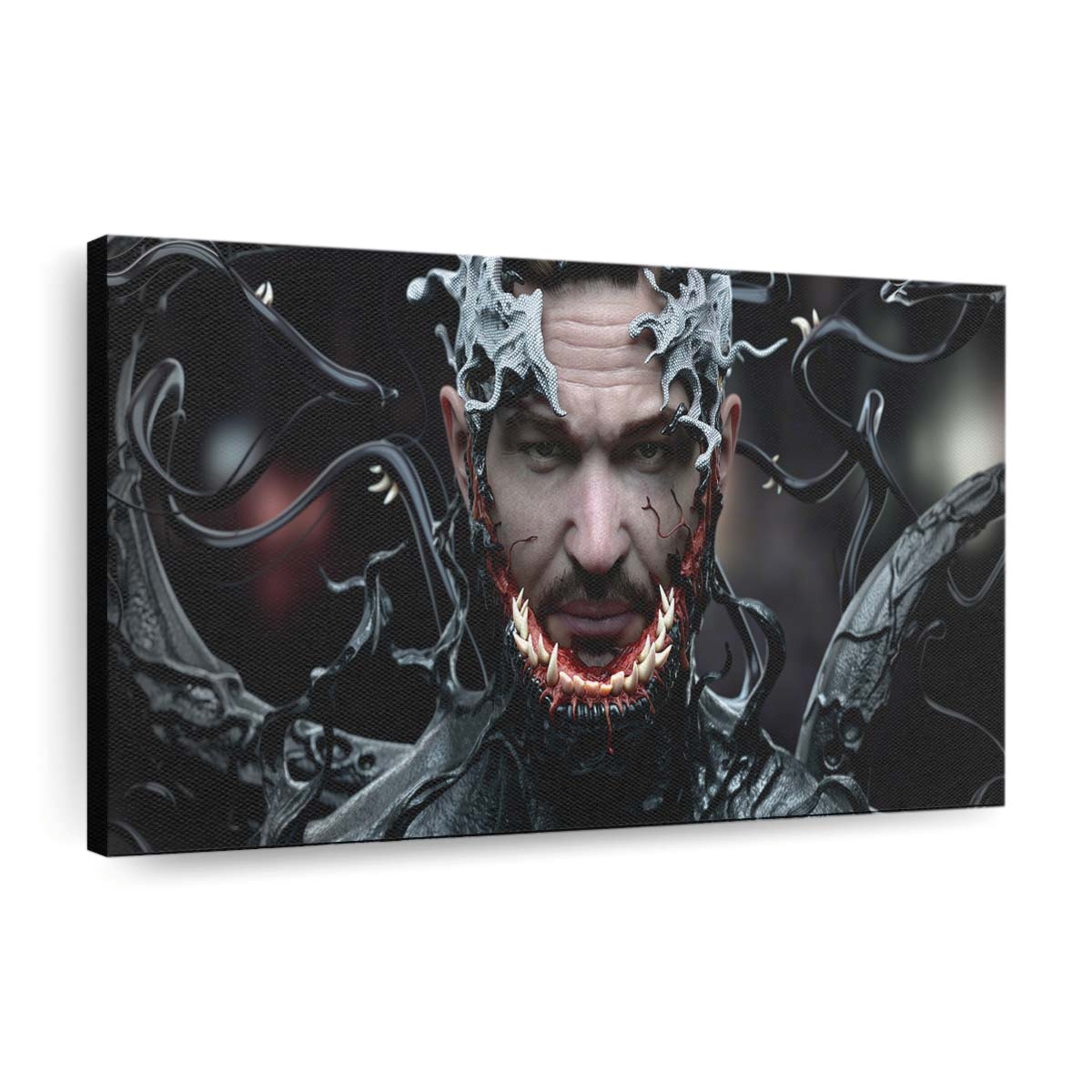 Tauchen Sie ein in die düstere Welt von Venom, dem berüchtigten Antihelden aus dem Marvel-Universum. Dieses hochwertige Leinwandbild fängt die rohe Kraft und bedrohliche Aura der symbiotischen Kreatur perfekt ein.