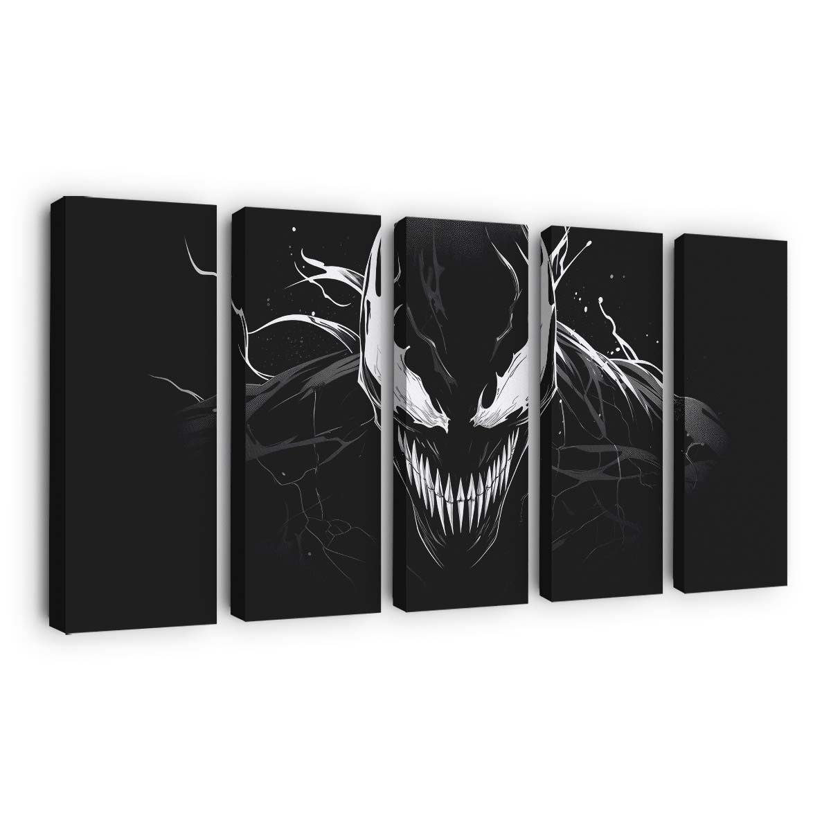 Tauchen Sie ein in die düstere Welt von Venom, dem berüchtigten Antihelden aus dem Marvel-Universum. Dieses hochwertige Leinwandbild fängt die rohe Kraft und bedrohliche Aura der symbiotischen Kreatur perfekt ein.