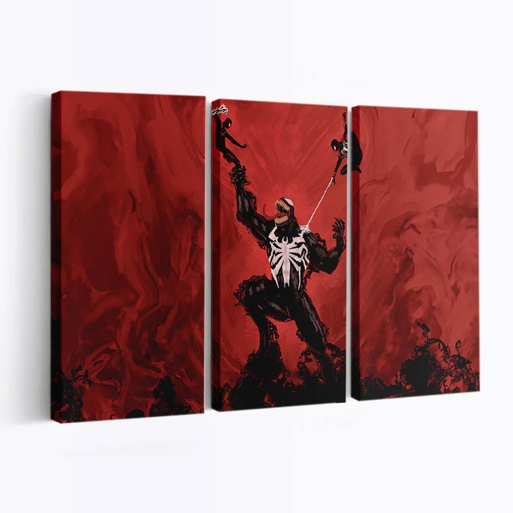 Venom gegen Trio Spider Man Leinwandbild – Wanddeko