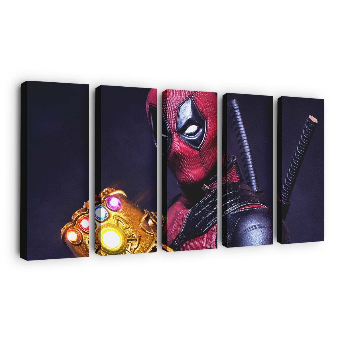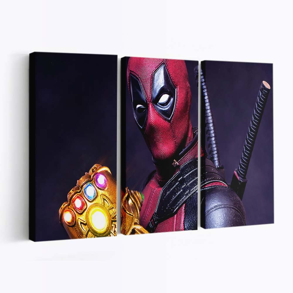 - Charakterstarkes Design: Ein unverwechselbares Artwork von Was wäre, wenn Deadpool den Handschuh hätte? Leinwandbild – Marvel Wanddeko, das seinen Humor und seine Wildheit perfekt einfängt.