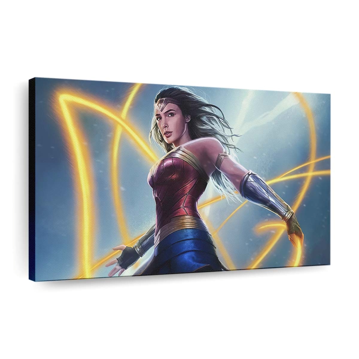 Erleben Sie die unvergleichliche Stärke und Grazie von Wonder Woman mit diesem meisterhaft gestalteten Leinwandbild. In leuchtenden Rot-, Blau- und Goldtönen erstrahlt die Amazone mit ihrem ikonischen Lasso der Wahrheit – ein Sinnbild für Mut, Gerechtigkeit und unerschütterlichen Willen. Ein wahrer Blickfang für DC- und Superhelden-Fans, der Ihrer Wand epischen Glanz verleiht.