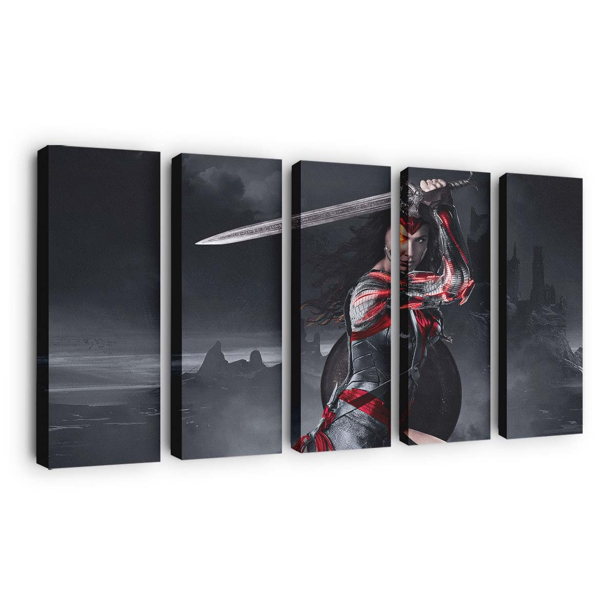 Holen Sie sich die unerschütterliche Energie der Amazonen-Kriegerin an Ihre Wand und verwandeln Sie Ihr Zuhause in ein Symbol für Mut und Gerechtigkeit.