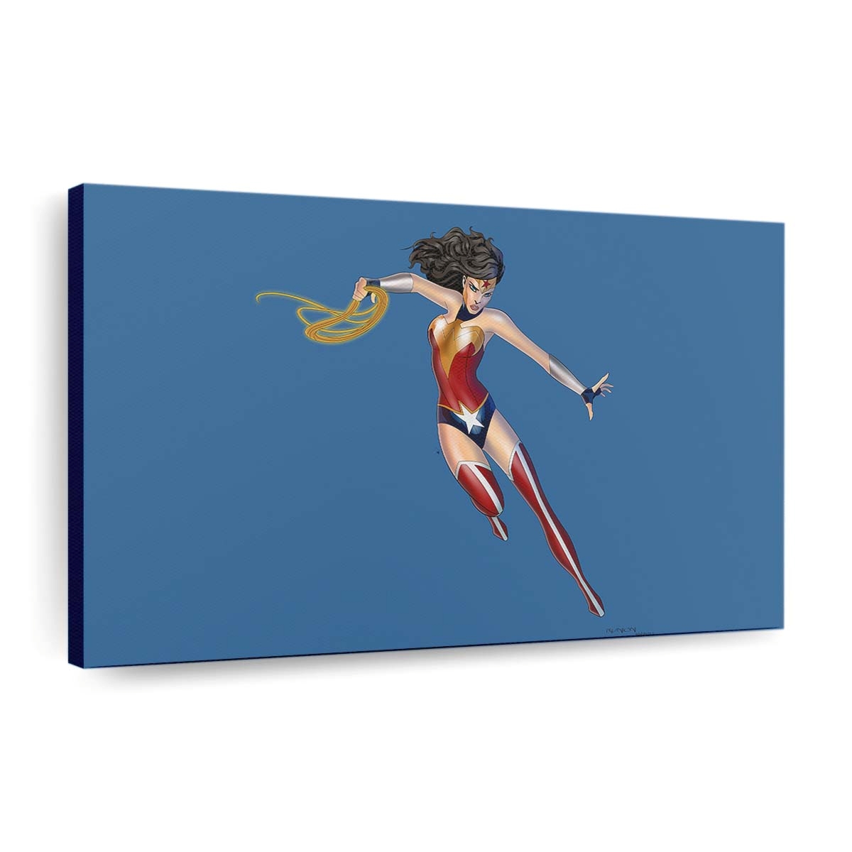 Erleben Sie die unvergleichliche Stärke und Grazie von Wonder Woman mit diesem meisterhaft gestalteten Leinwandbild. In leuchtenden Rot-, Blau- und Goldtönen erstrahlt die Amazone mit ihrem ikonischen Lasso der Wahrheit – ein Sinnbild für Mut, Gerechtigkeit und unerschütterlichen Willen. Ein wahrer Blickfang für DC- und Superhelden-Fans, der Ihrer Wand epischen Glanz verleiht.