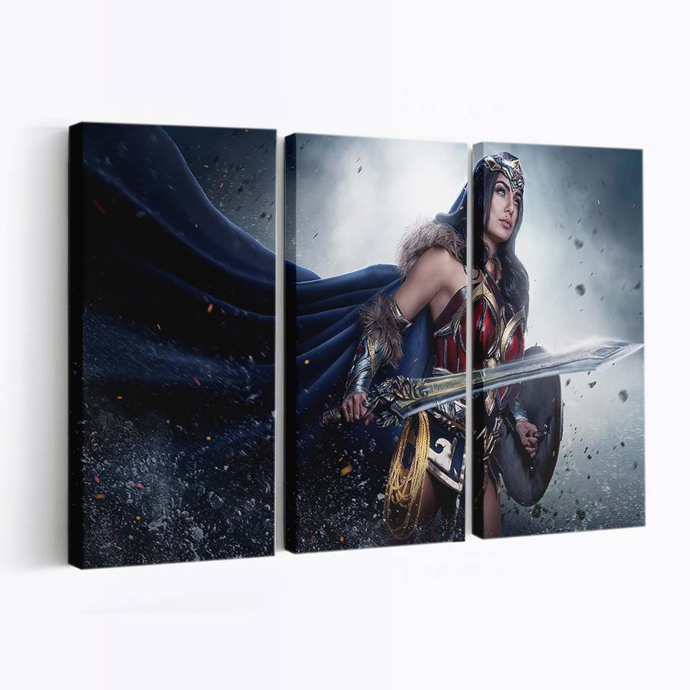 Holen Sie sich die unerschütterliche Energie der Amazonen-Kriegerin an Ihre Wand und verwandeln Sie Ihr Zuhause in ein Symbol für Mut und Gerechtigkeit.