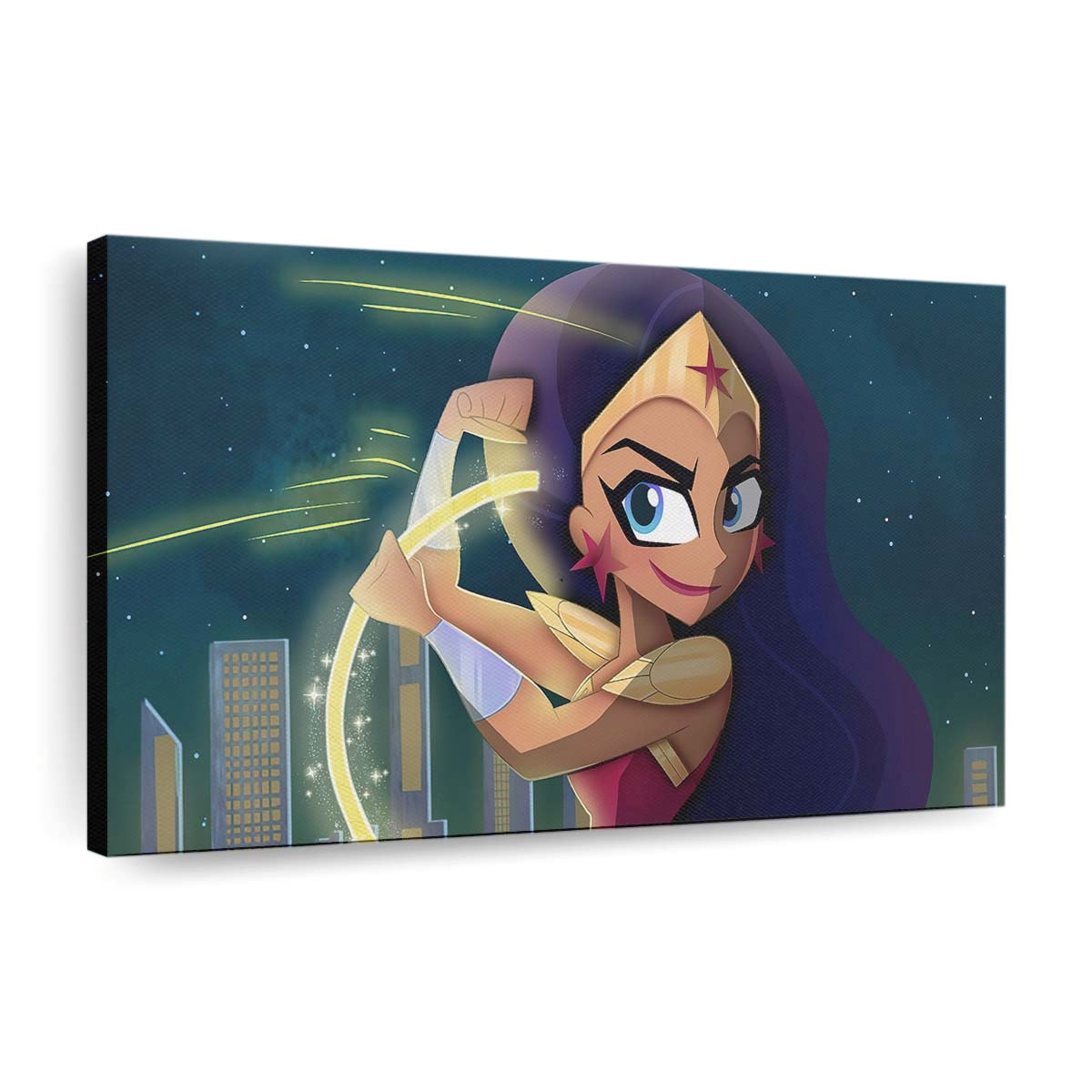 Erleben Sie die unvergleichliche Stärke und Grazie von Wonder Woman mit diesem meisterhaft gestalteten Leinwandbild. In leuchtenden Rot-, Blau- und Goldtönen erstrahlt die Amazone mit ihrem ikonischen Lasso der Wahrheit – ein Sinnbild für Mut, Gerechtigkeit und unerschütterlichen Willen. Ein wahrer Blickfang für DC- und Superhelden-Fans, der Ihrer Wand epischen Glanz verleiht.