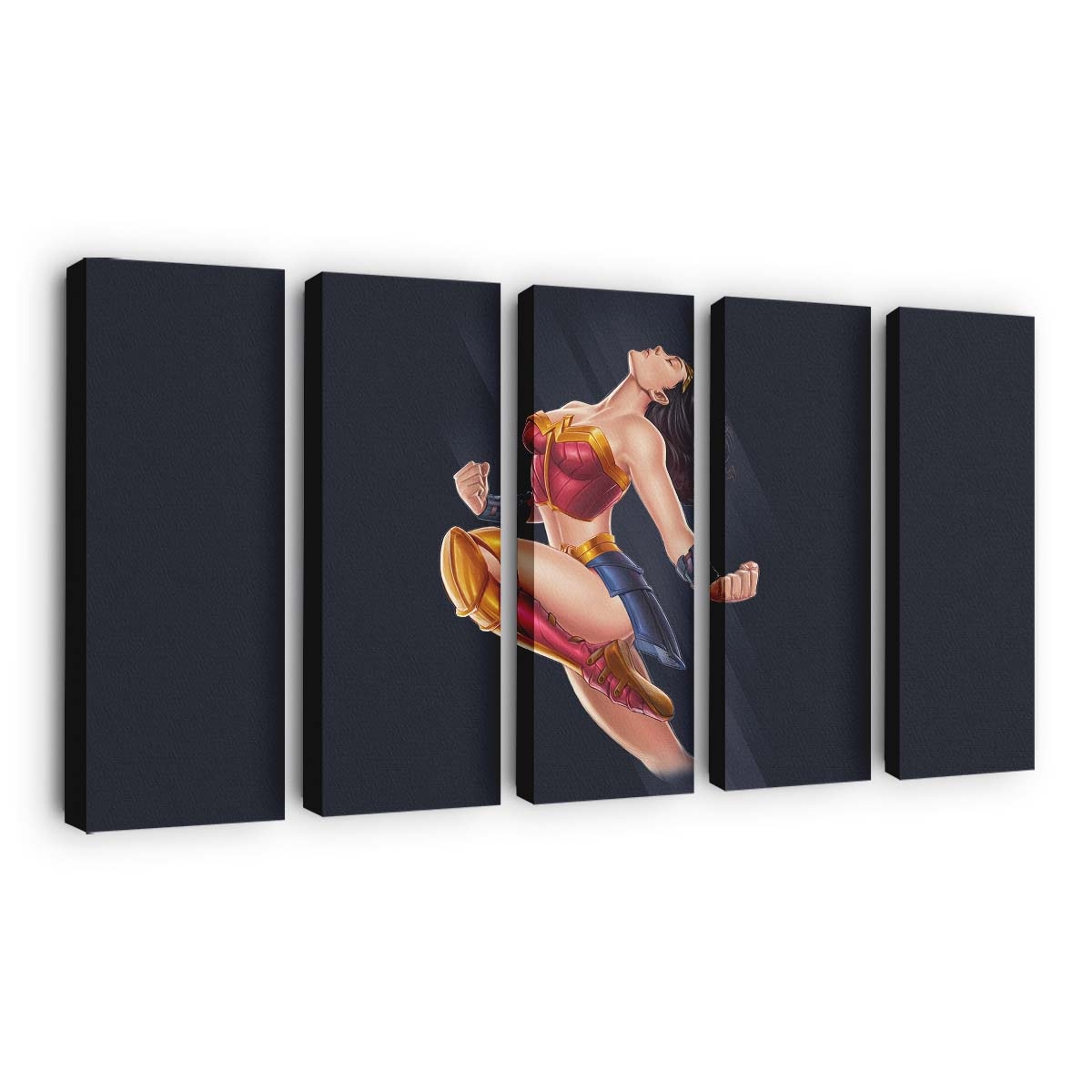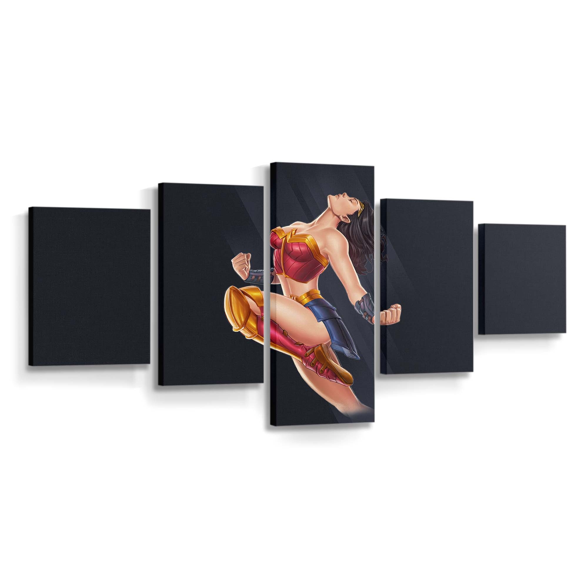 Erleben Sie die unvergleichliche Stärke und Grazie von Wonder Woman mit diesem meisterhaft gestalteten Leinwandbild. In leuchtenden Rot-, Blau- und Goldtönen erstrahlt die Amazone mit ihrem ikonischen Lasso der Wahrheit – ein Sinnbild für Mut, Gerechtigkeit und unerschütterlichen Willen. Ein wahrer Blickfang für DC- und Superhelden-Fans, der Ihrer Wand epischen Glanz verleiht.