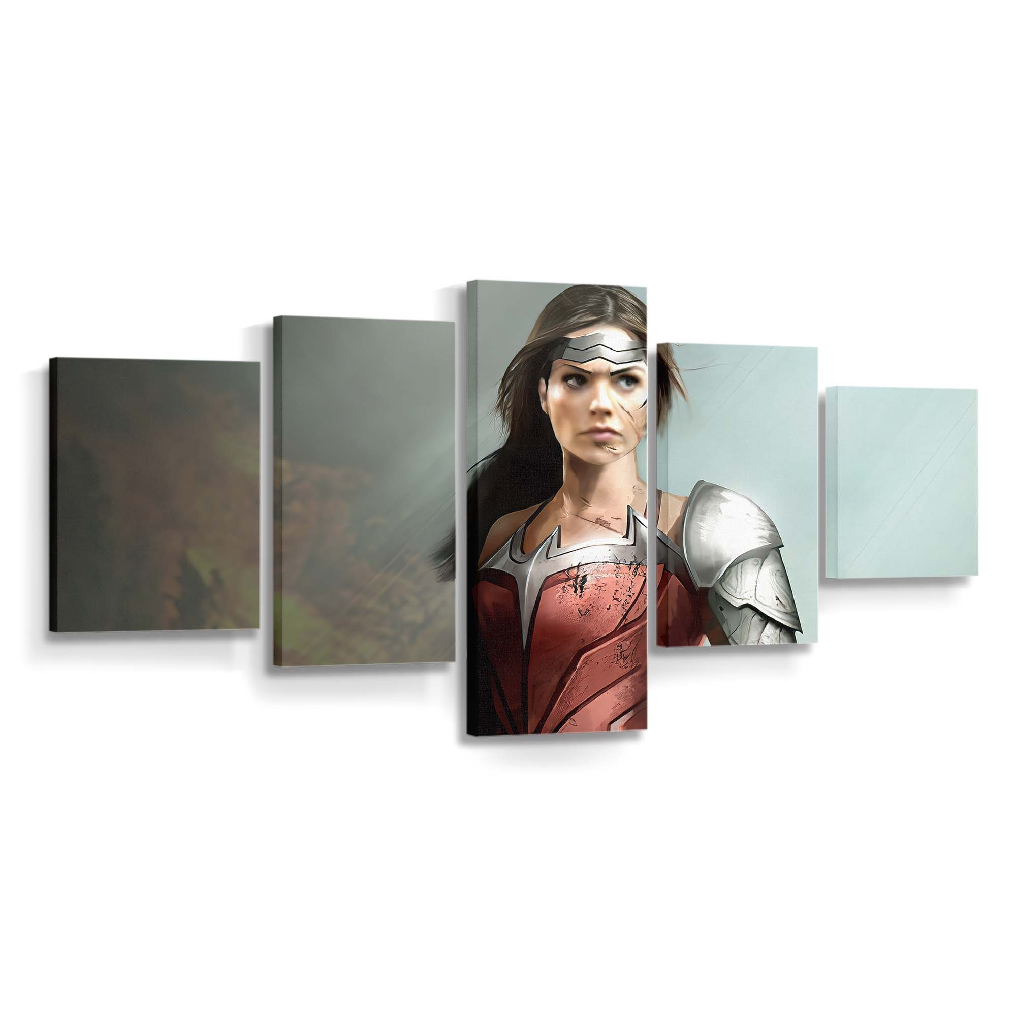 Holen Sie sich die unerschütterliche Energie der Amazonen-Kriegerin an Ihre Wand und verwandeln Sie Ihr Zuhause in ein Symbol für Mut und Gerechtigkeit.