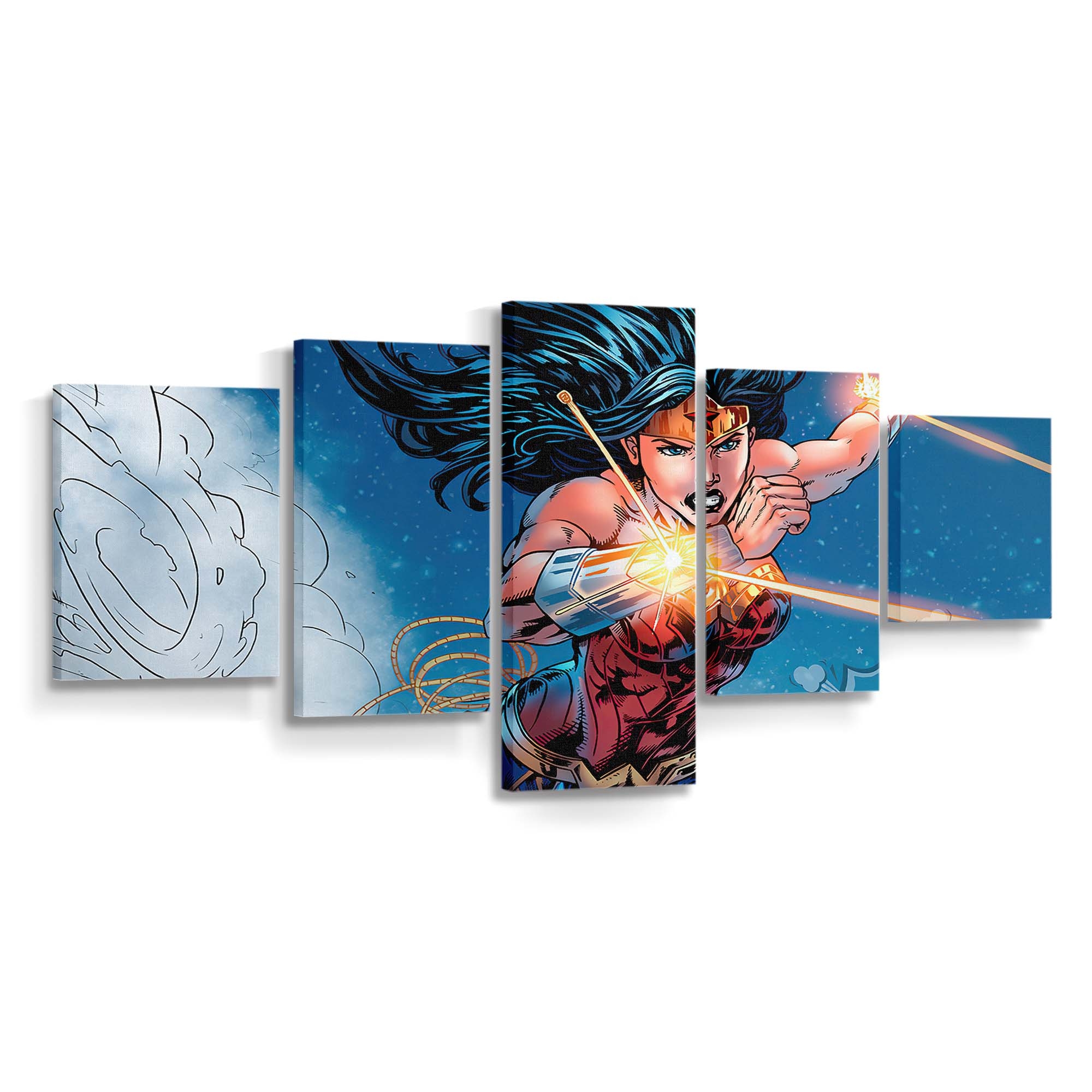 Erleben Sie die unvergleichliche Stärke und Grazie von Wonder Woman mit diesem meisterhaft gestalteten Leinwandbild. In leuchtenden Rot-, Blau- und Goldtönen erstrahlt die Amazone mit ihrem ikonischen Lasso der Wahrheit – ein Sinnbild für Mut, Gerechtigkeit und unerschütterlichen Willen. Ein wahrer Blickfang für DC- und Superhelden-Fans, der Ihrer Wand epischen Glanz verleiht.