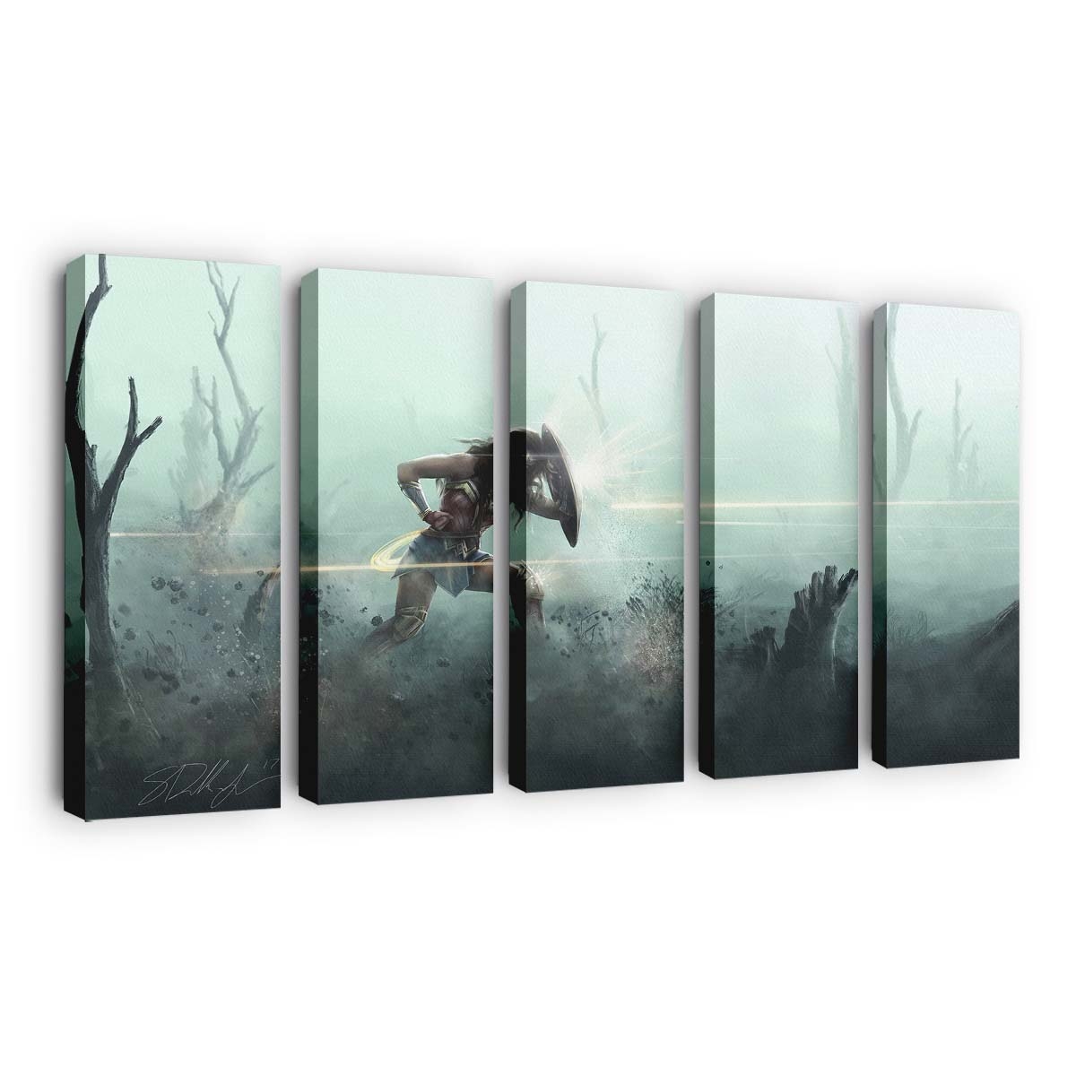 Holen Sie sich die unerschütterliche Energie der Amazonen-Kriegerin an Ihre Wand und verwandeln Sie Ihr Zuhause in ein Symbol für Mut und Gerechtigkeit.